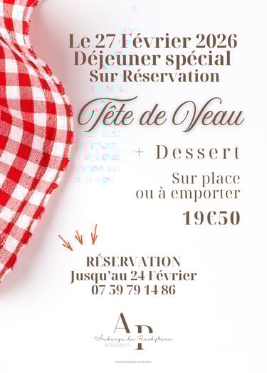 Savourez des plats faits maison avec des produits locaux, préparés avec passion par Jean-Baptiste. Venez découvrir les saveurs authentiques de notre terroir, déguster nos plats mijotés avec soin et partager un moment de pure détente dans notre auberge familiale.