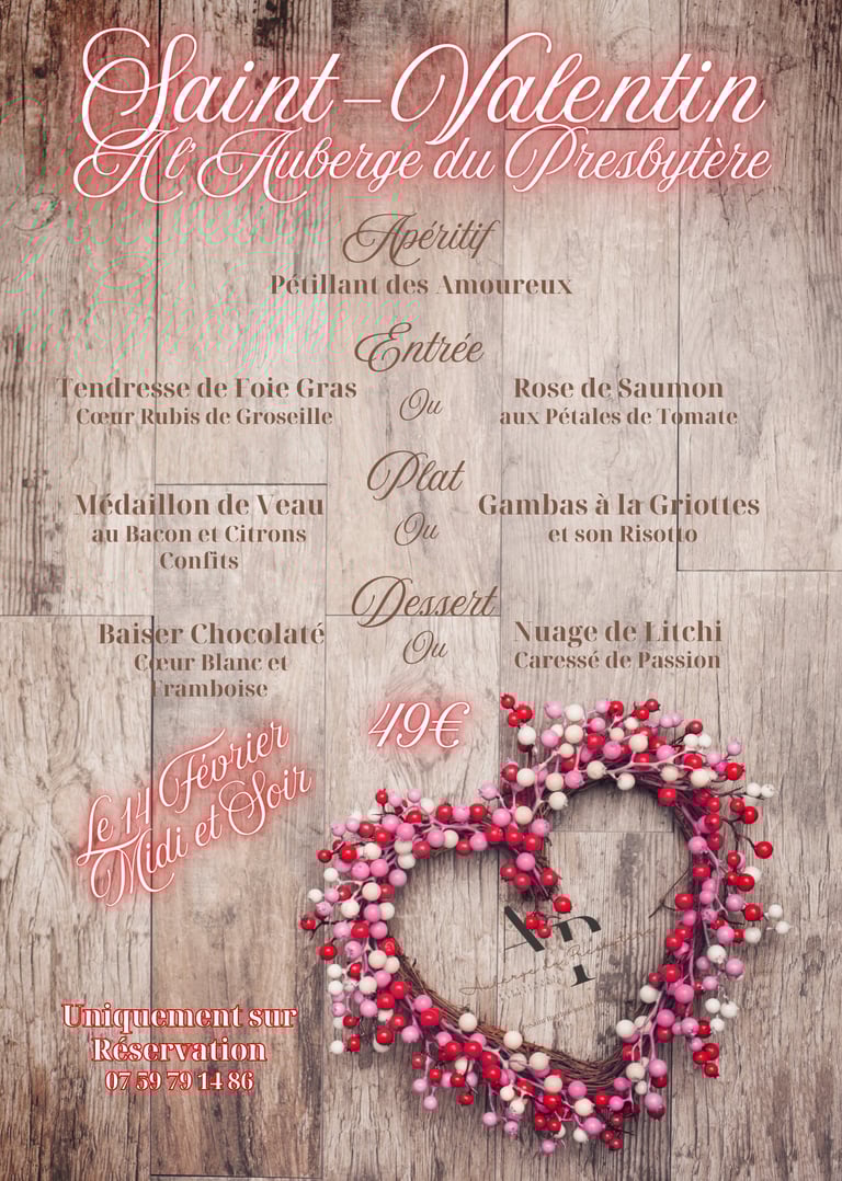 A l'occasion de la Saint-Valentin, notre Chef Jean-Baptiste a concocté un menu spécial qui fera chavirer vos cœurs!