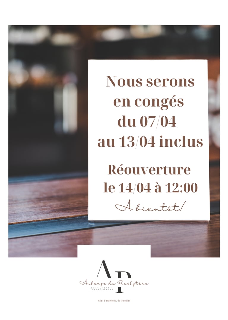Nous serons en congés du 07 au 13 Avril 2026 Inclus